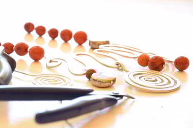Ich fertige Schmuck aus den verschiedensten Materialien für Sie an. Naturstein, handgefertigte Keramikperlen, Aluminiumdraht, Filz, Glasperlen u.a. werden kreativ